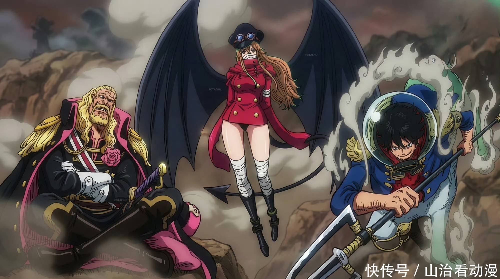 母亲看着孩子前进,她们也无法阻止孩子了,直接抱起孩子,她们一同掉冥界,就在这个危机关头,洛基王子变成黑龙形态出现,他直接救了这些孩子和母亲,路飞就站在黑龙的脑袋上。